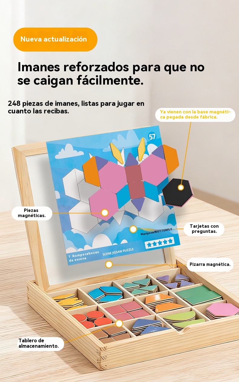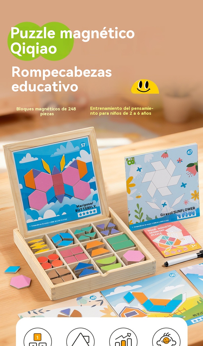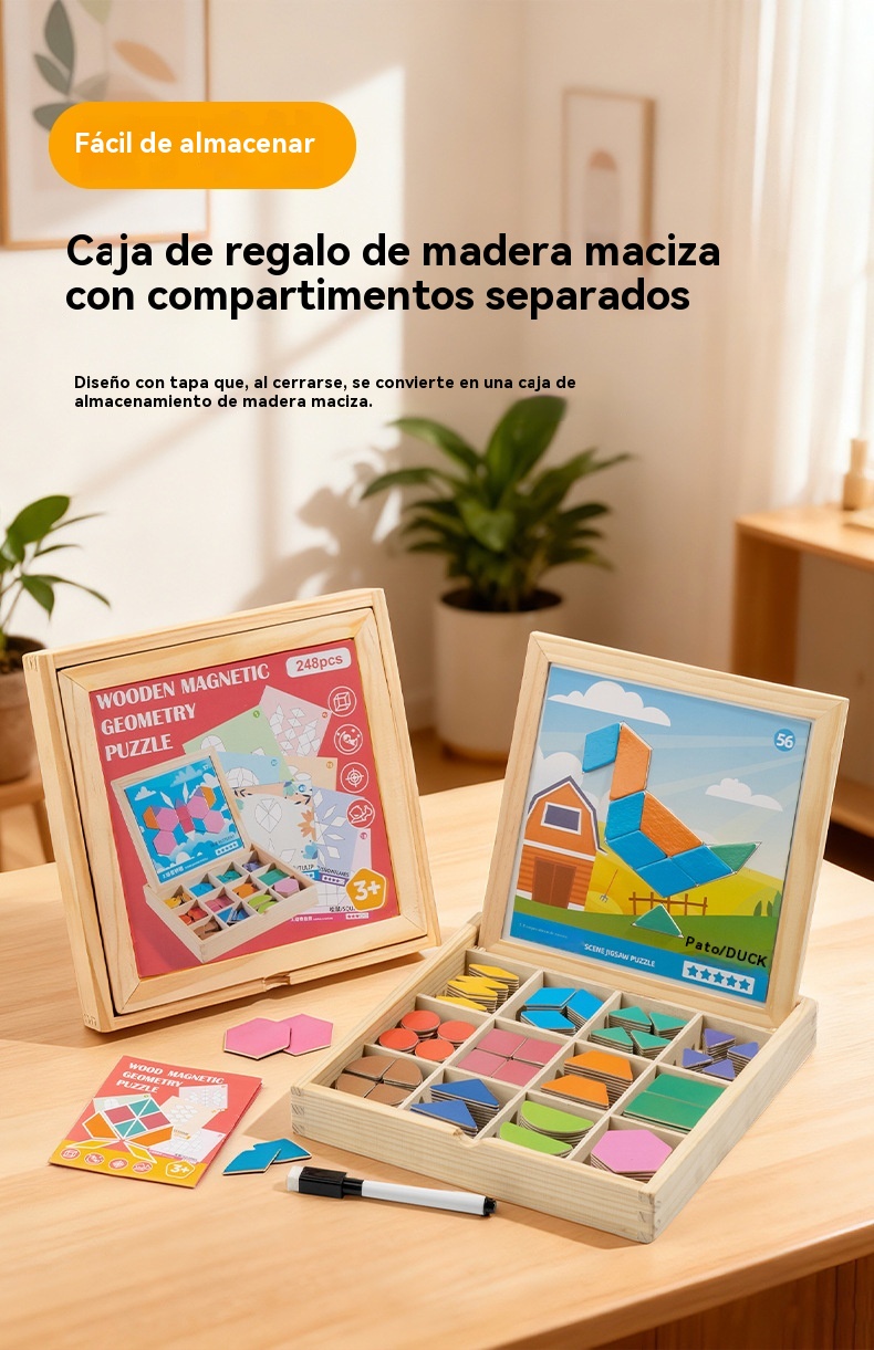 👶🌈🧩【248 darabos】🔥Mágneses fa tangram kirakós játék, agytréning és oktató játék gyerekeknek, gondolkodást serkentő