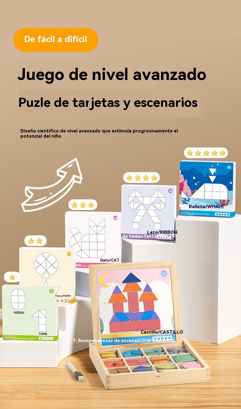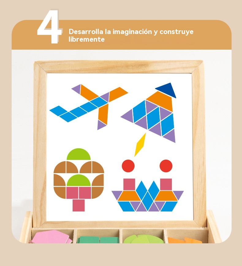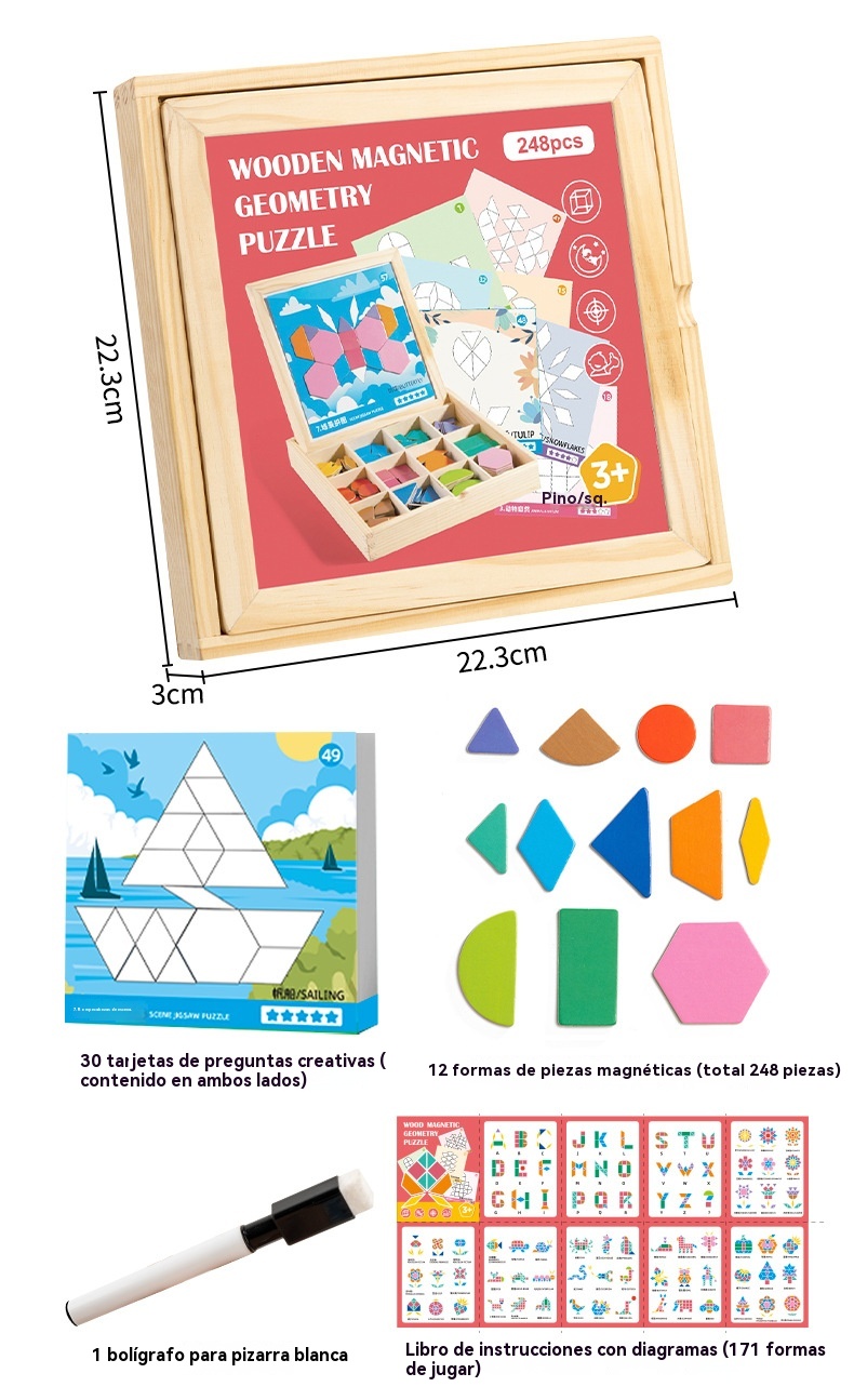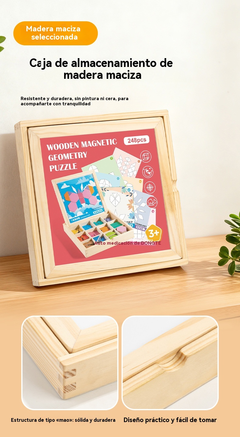 👶🌈🧩【248 darabos】🔥Mágneses fa tangram kirakós játék, agytréning és oktató játék gyerekeknek, gondolkodást serkentő