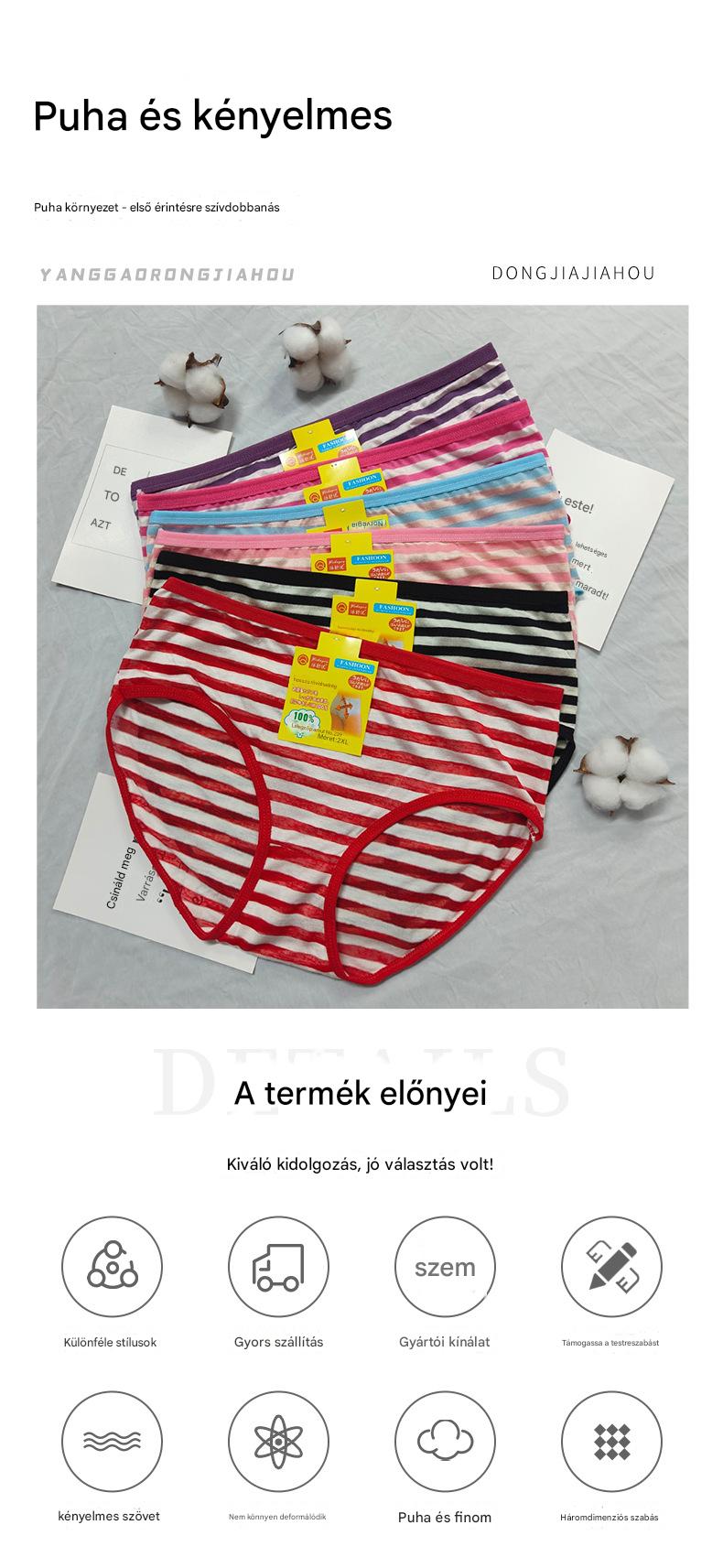 💥Új, magas derekú, csíkos pamut alsónemű középkorúak és idősek számára